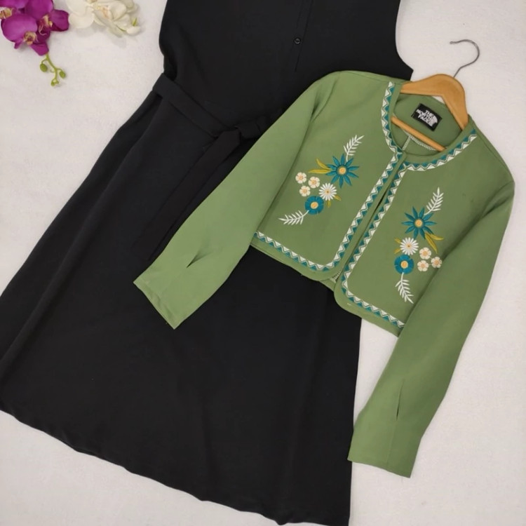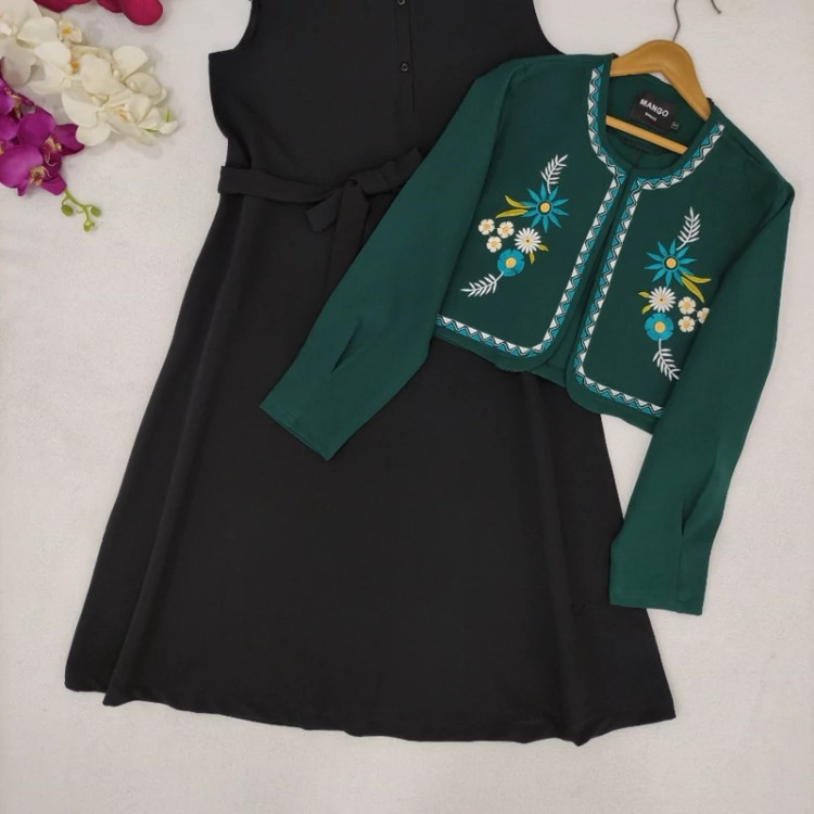 🍃نام : کت و سارافون سوگل 🍃جنس : مازراتی 🍃رنگ بندی : سبز آدامسی, کرمی, کله غازی, نسکافه ای.کرمی روشن . مشکی سایز ها : 38تا 42 44تا 48 🌹قد کت 42 🌹قد سارافون 110 🌹قد آستین 55 🌹دورسینه کت سایز یک 98 سایز دو 108 🌹دورسینه سارافون سایز یک 98 سایز دو 110 جلو کت لایی کشی شده است . طرح جلوی کت تماما گلدوزی شده است تن خور لباس استثنایی و زیبا 🤌