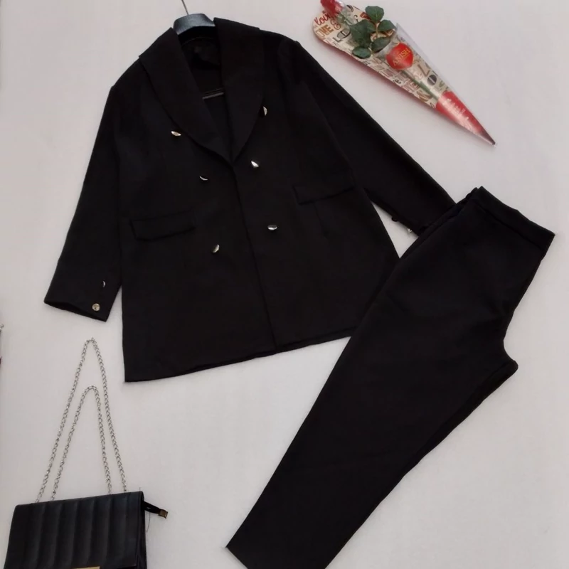 #کالکشن_عیدانه 🧚♂️مانتو شلوار شیک ویژه خانمهای خوش سلیقه🥰 مهدخ🆔 شناسه : #76830 🌙نام : ست مانتو شلوار عیدانه نسیما دکمه طلایی😍 تنخور شیک و عاااالی😍 فری سایز از 38تا46✅ 💥مشخصات کت: قد78،دورسینه112،آستین از سرشانه 54،دکمه ها کاربردی ✅ 💥مشخصات شلوار: قد92،پشت کمر کش،دور دمپا32،دورران60✅ 🌙جنس : مازراتی درجه یک 🌙رنگ بندی : مشکی - سبز - 🌙 قیمت : 950تومان