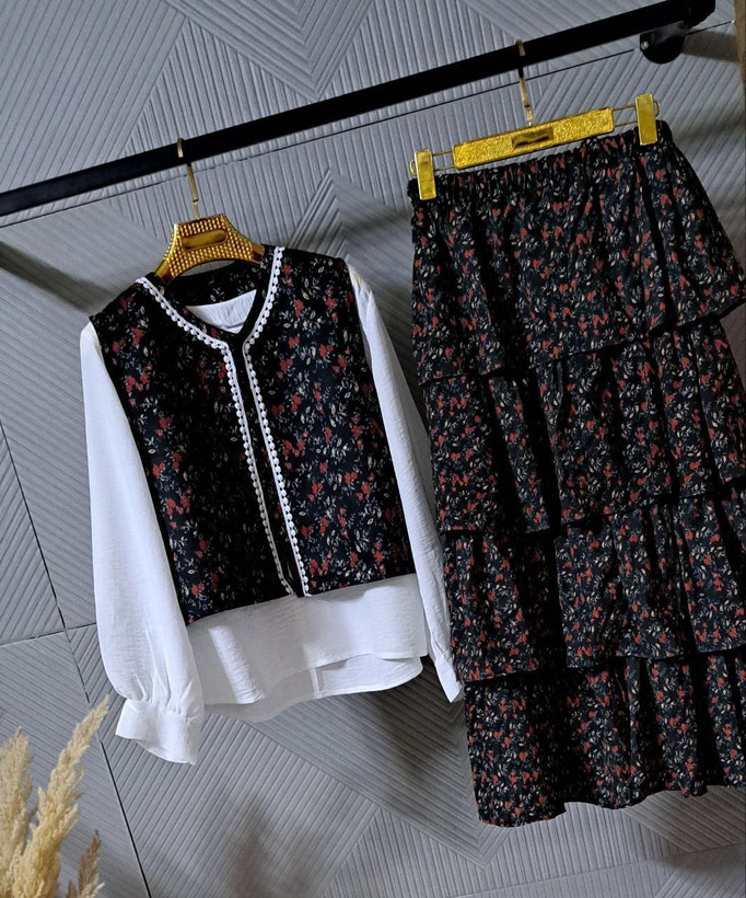 👗 ست شومیز جلیقه و دامن یعنی شیکپوشی با راحتی ترکیب میشه! 💖