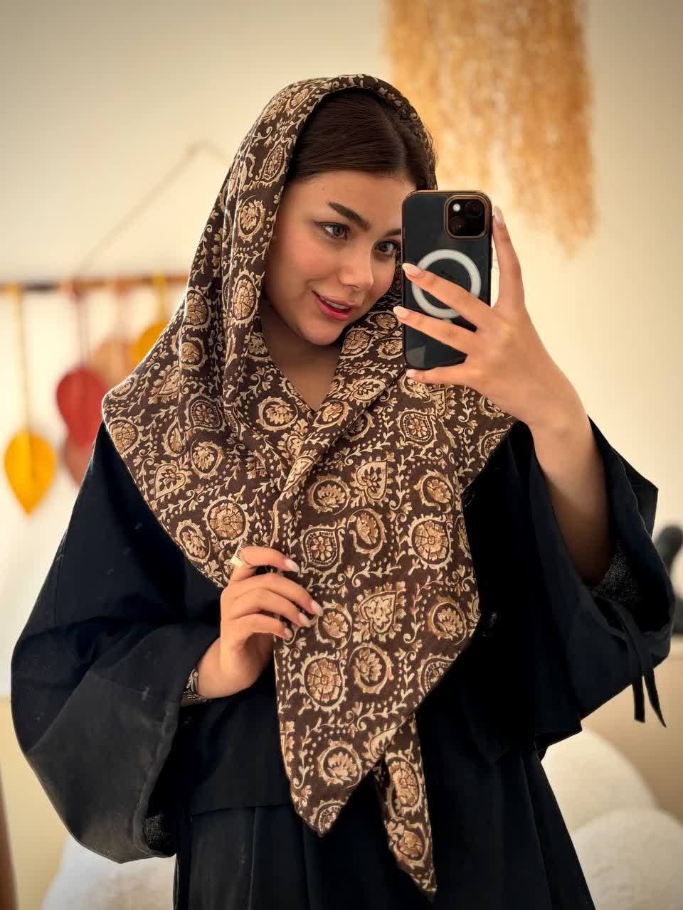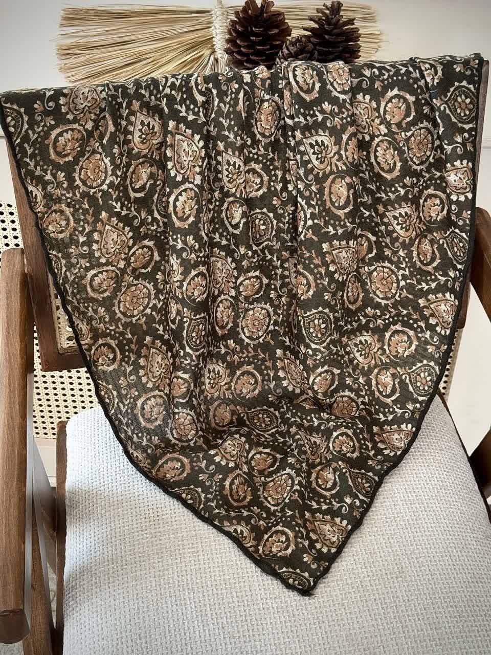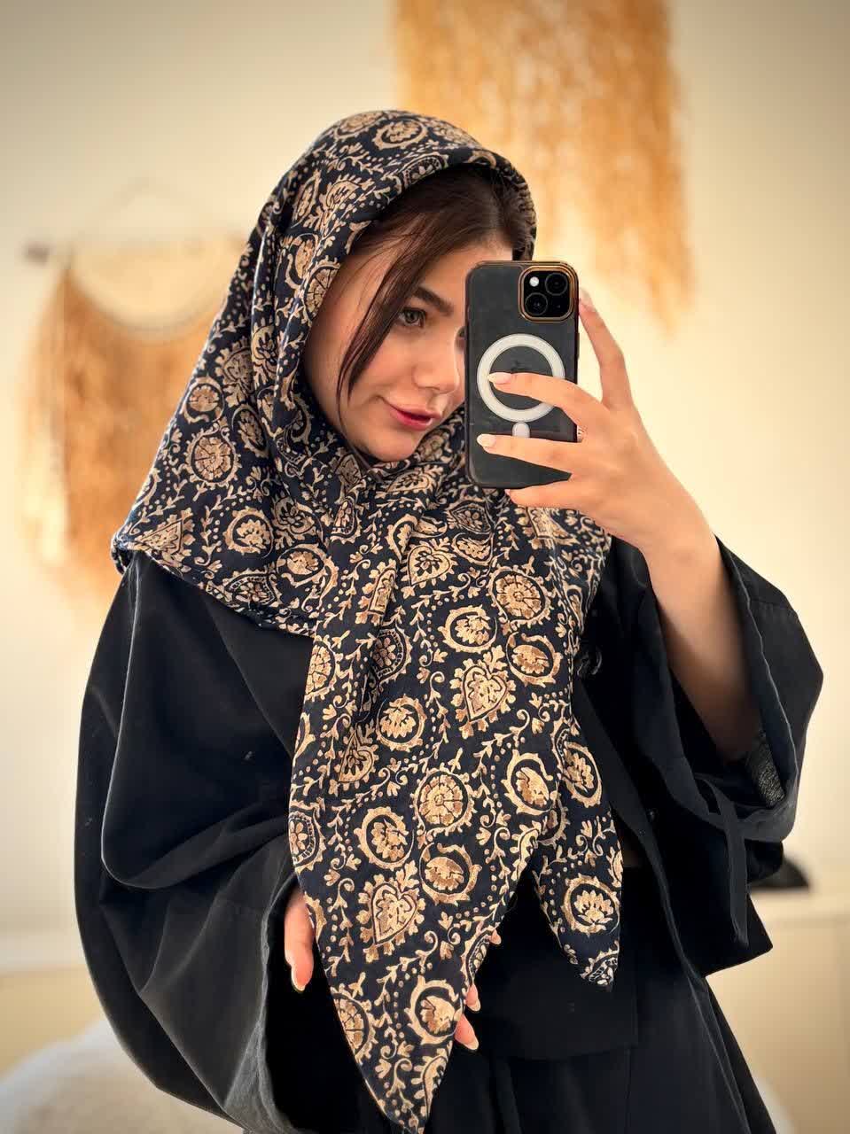 روسری قواره دار پائییزه،چنس پارچه نخ کندویی،قواره ۱۲۰
