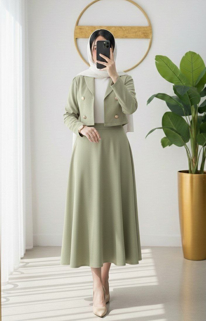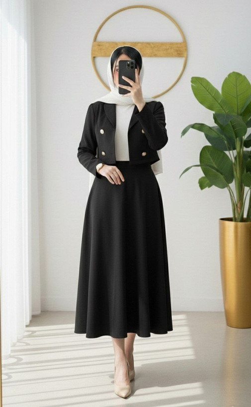 همیشه ازپرفروش ترین کت دامن هاس، چون هم خیلی تنخور شیک و جذابی داره هم انقدکاربردیه که توی مراسمات و مهمونیا یا بیرون رفتن وموقعیتای رسمی میتونی استفادش کنی هم انقدبا کیفیته که سالهابرات کارکنه و هیچوقت دمده نشه😍