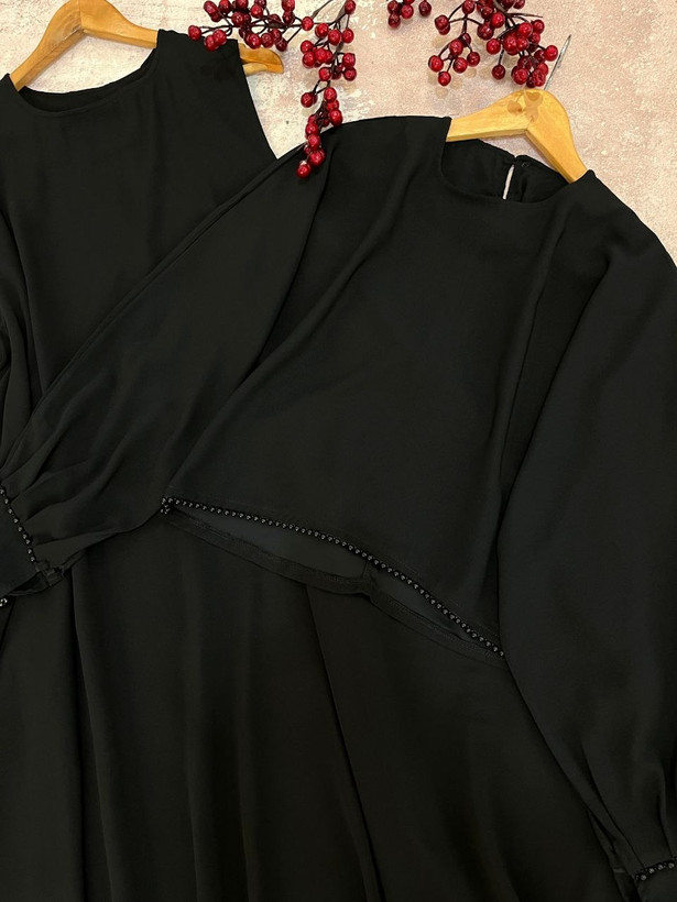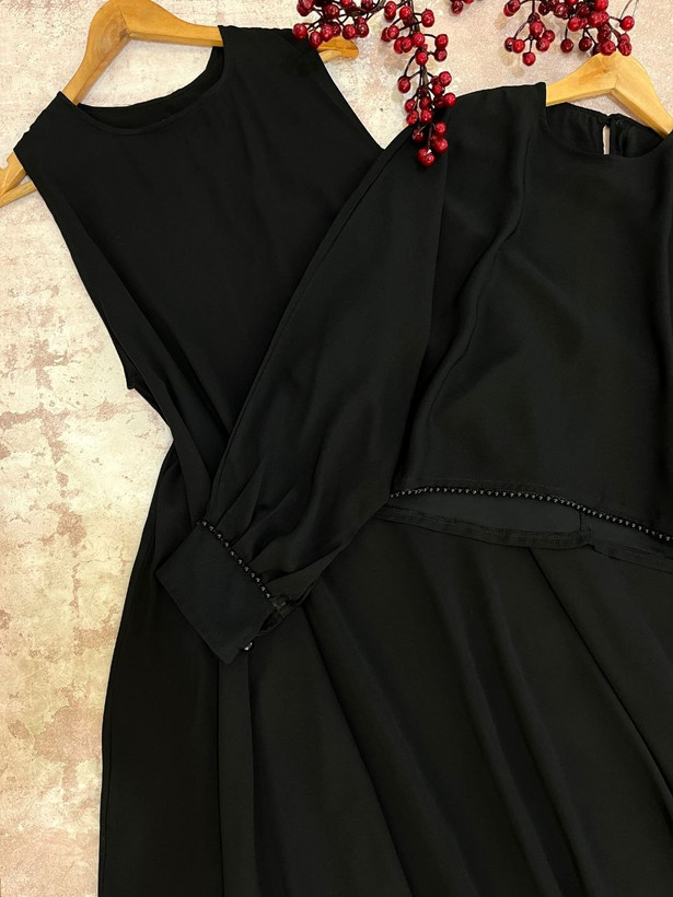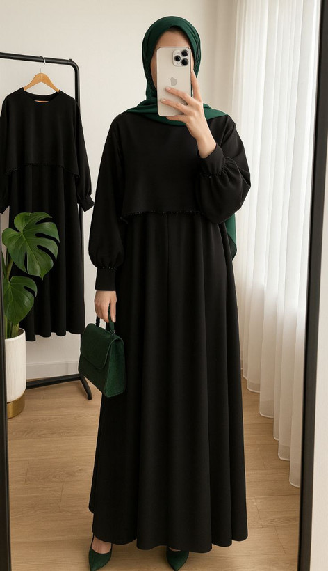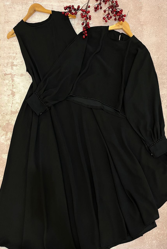 🗒️توضیحات :داخل پیراهن بندتنظیم سایز داره،پارچه کاملا مشکی و لخت، تنخور زیباوشیک، مرواریدهادوخته شده و بدون ریزش، مچ استین دکمه داره برای راحتی وضو، اصلا بدن نمایی پرزدهی یاابرفت نداره