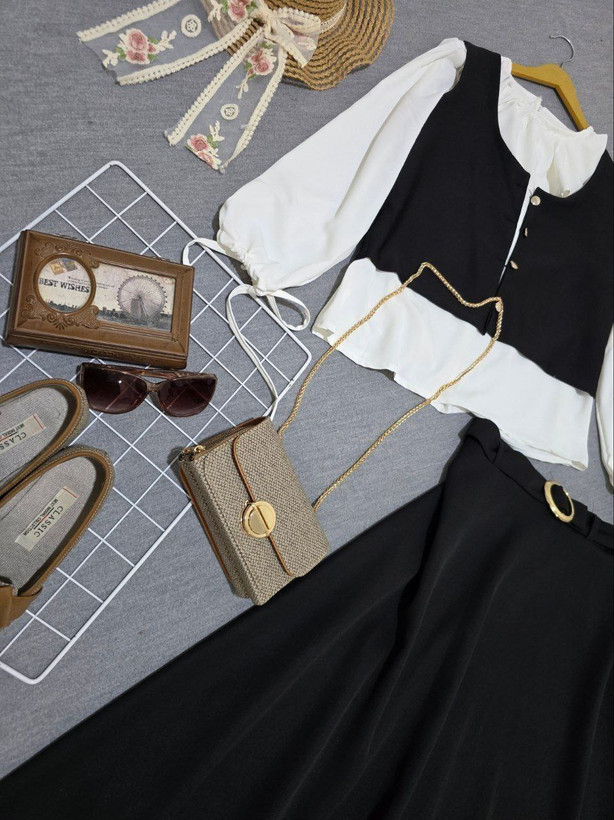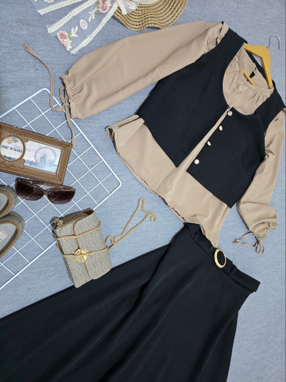 ست سه تیکه،جلیقه و دامن مازراتی ،شومیز الیزه،فری سایز تا۴۶