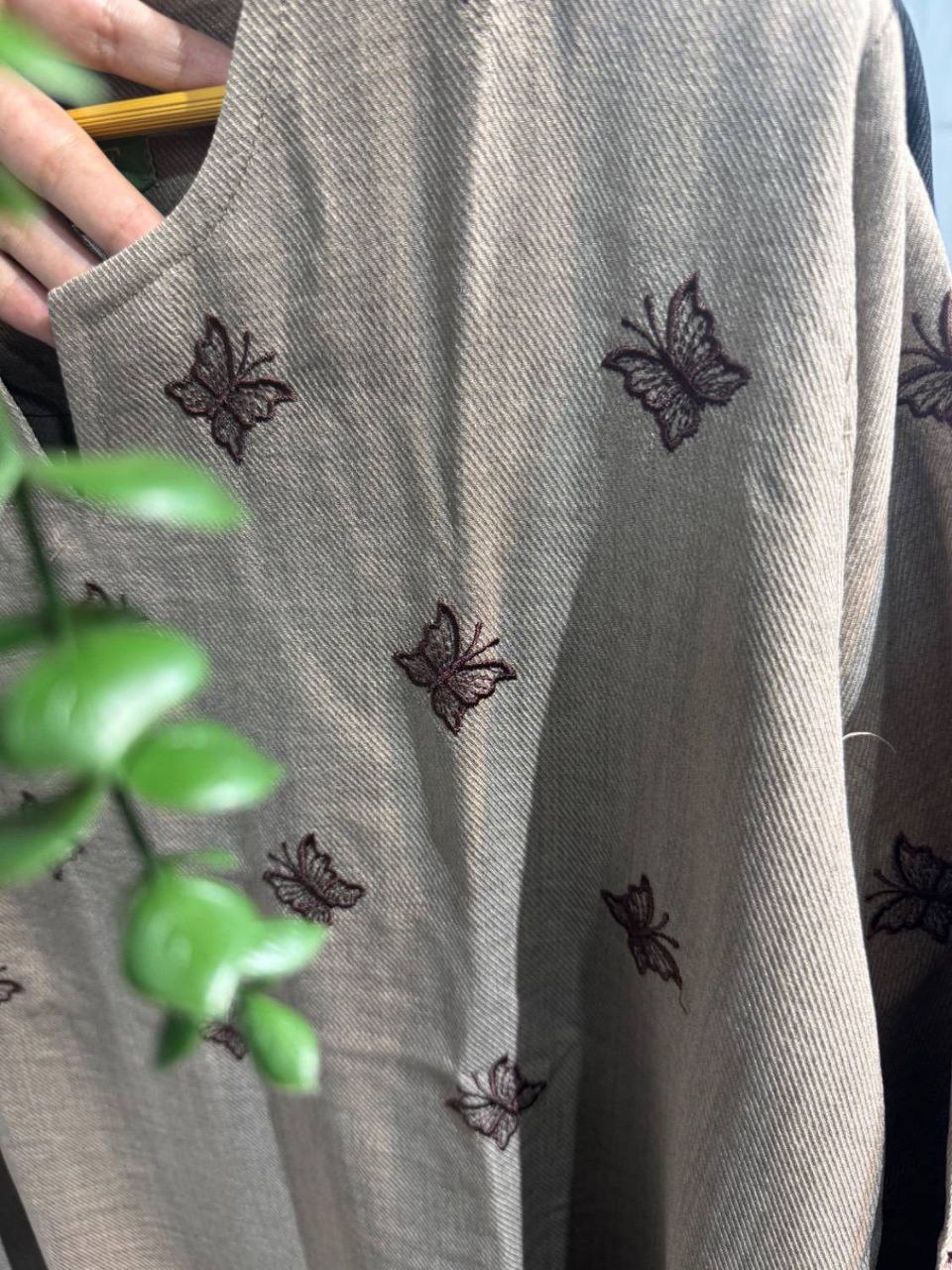 📋 توضیحات: ❤️کالکشن عیدانه❤️مانتوپیراهنی گلدوزی پروانه جنسش شانتون کنفی هستش چروک وابرفت نداره