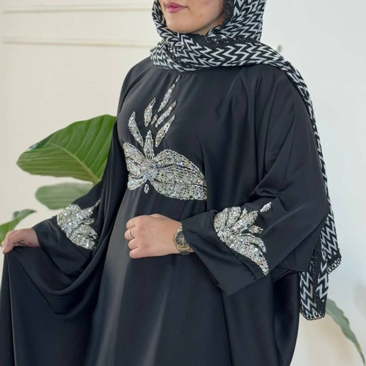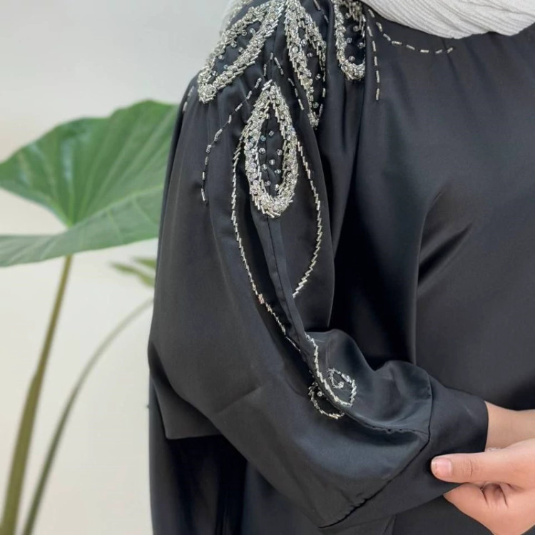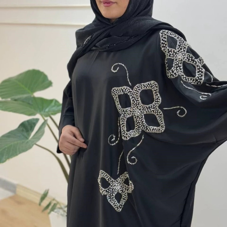 عبا طرح گل مروارید دست دوزی،فری سایز 38تا56