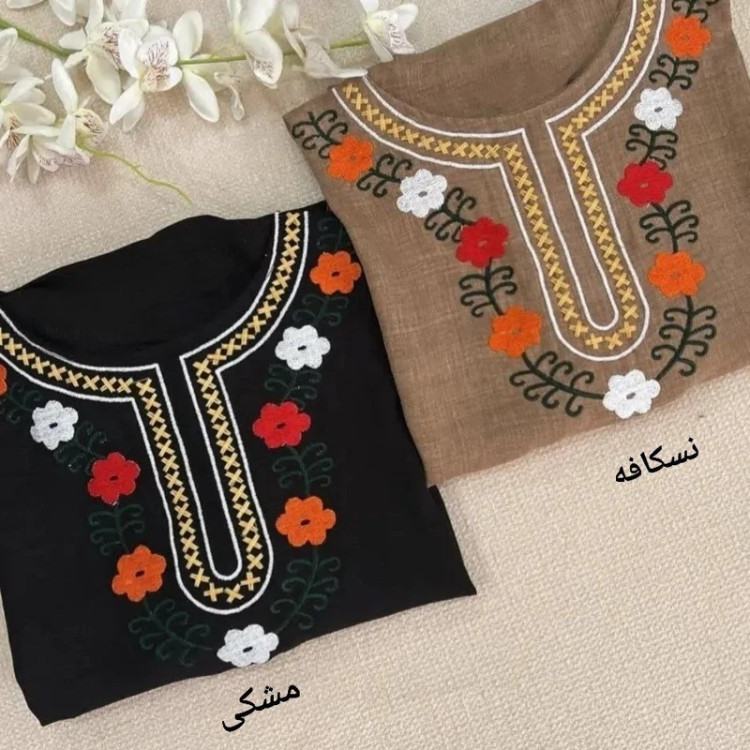 🗒️توضیحات :پارچه کشسانی نداره,طرحش گلدوزی شده ،مچ استین کشی، پارچه ب راحتی چروک نمیشه و بسیار باکیفیته. بدون آبرفت بدون پرزدهی