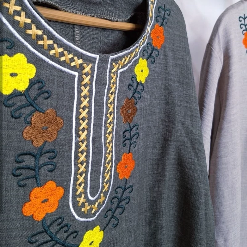 🗒️توضیحات :پارچه کشسانی نداره,طرحش گلدوزی شده ،مچ استین کشی، پارچه ب راحتی چروک نمیشه و بسیار باکیفیته. بدون آبرفت بدون پرزدهی