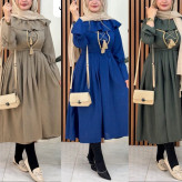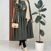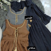 قدشومیز60✅قد آستین 57✅ دور سینه شومیز 110✅قد سارافون 115✅ دور سینه سارافون 100✅پشت سارافون زیپ دارد