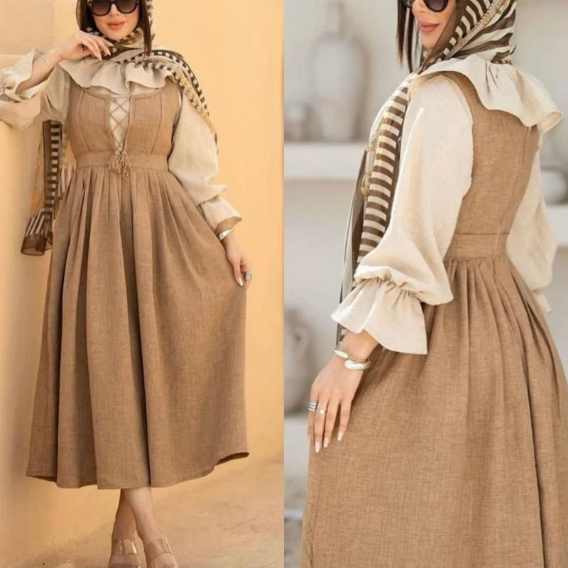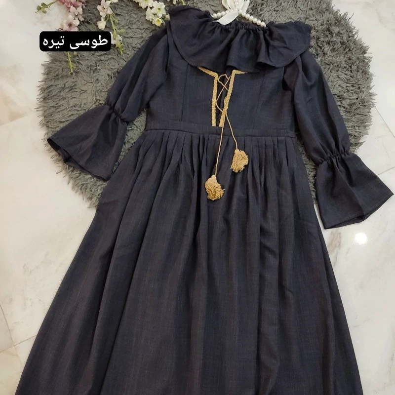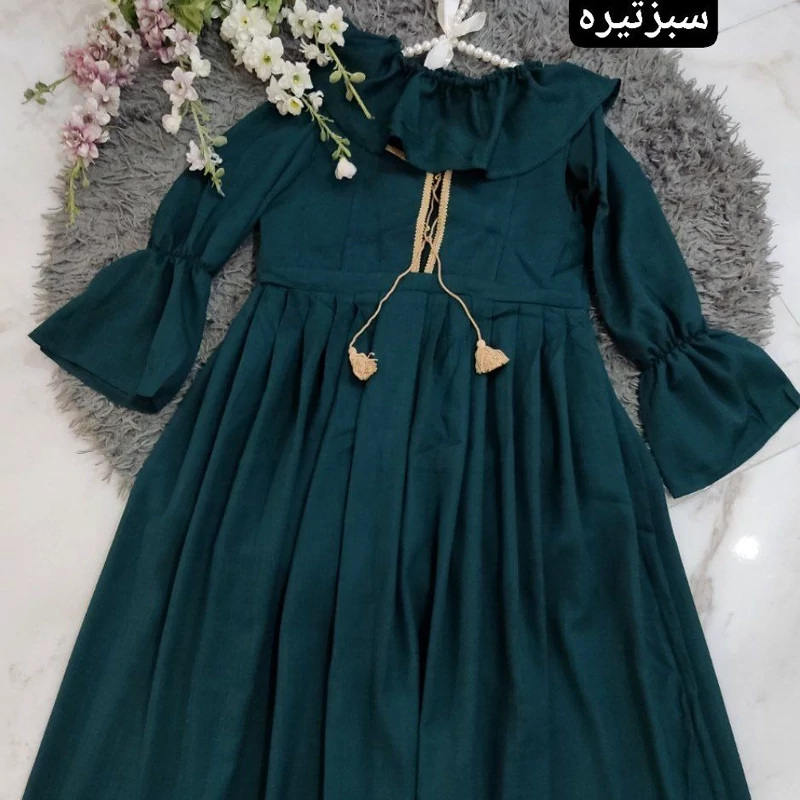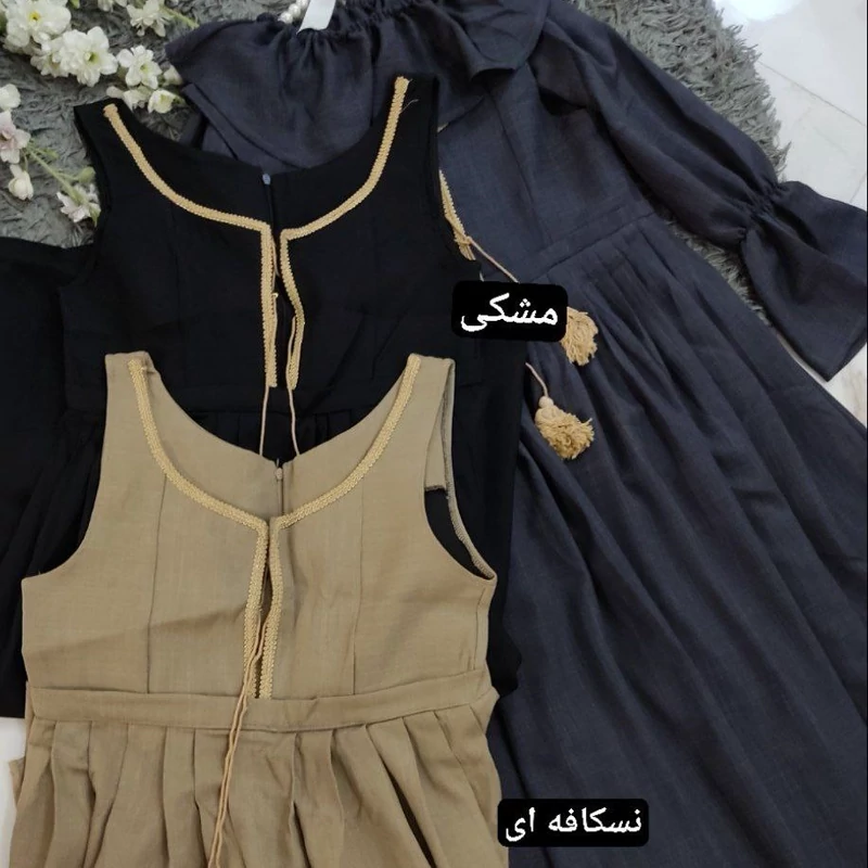 قدشومیز60✅قد آستین 57✅ دور سینه شومیز 110✅قد سارافون 115✅ دور سینه سارافون 100✅پشت سارافون زیپ دارد