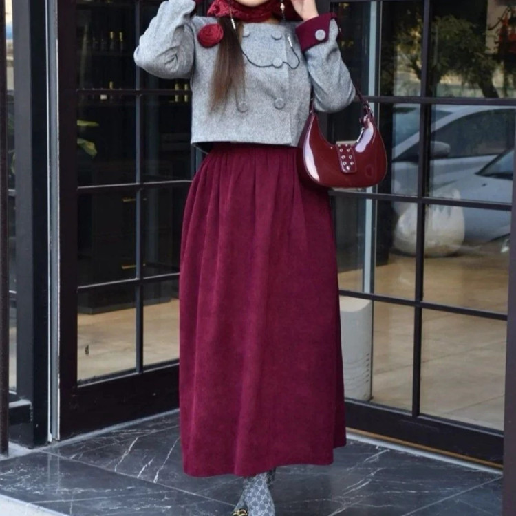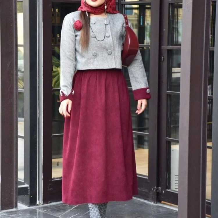 کت و دامن بهارناز،پارچه کشمیر بافت و مخمل کبریتی،سایز 38تا48