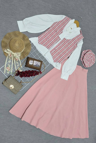 ست سه تیکه خاص فانتزی و گوگولی( جلیقه ،شومیزودامن)،فری سایز تا ۴۶،جنس بوگاتی آسترداروشانتون ژاگارداعلا